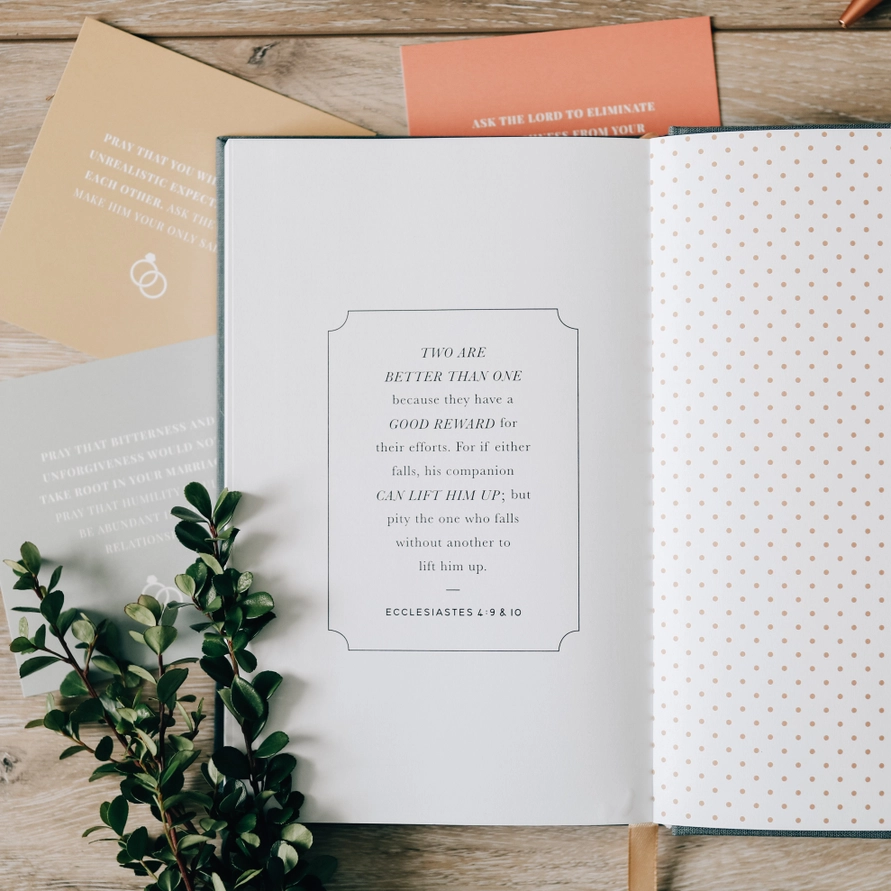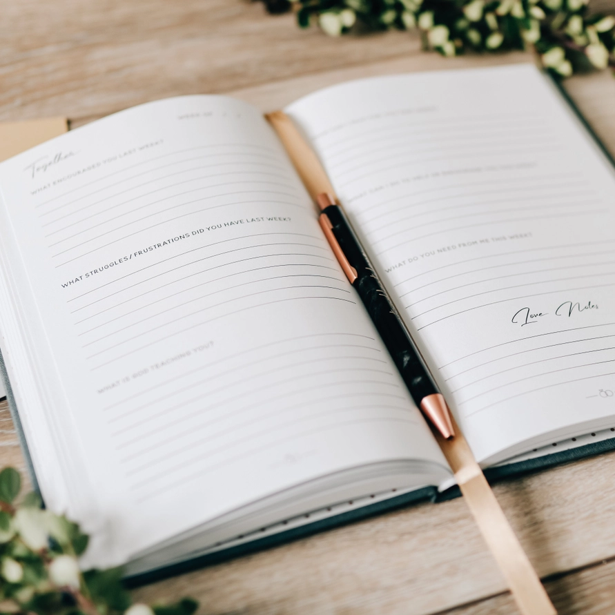 The Together Marriage Journal is a marriage tool to help you communicate with your spouse, pray for your spouse, and encourage your spouse. The journal is designed to be flexible to be able to be used by one or both spouses. You can either talk through the pages and record the answers together, or you can use it on your own as a way to intentionally plan to encourage and pray for your spouse throughout the week.